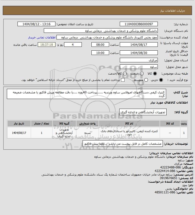 نام دستگاه خریدار:دانشگاه علوم پزشکی و خدمات بهداشتی درمانی ساوه
