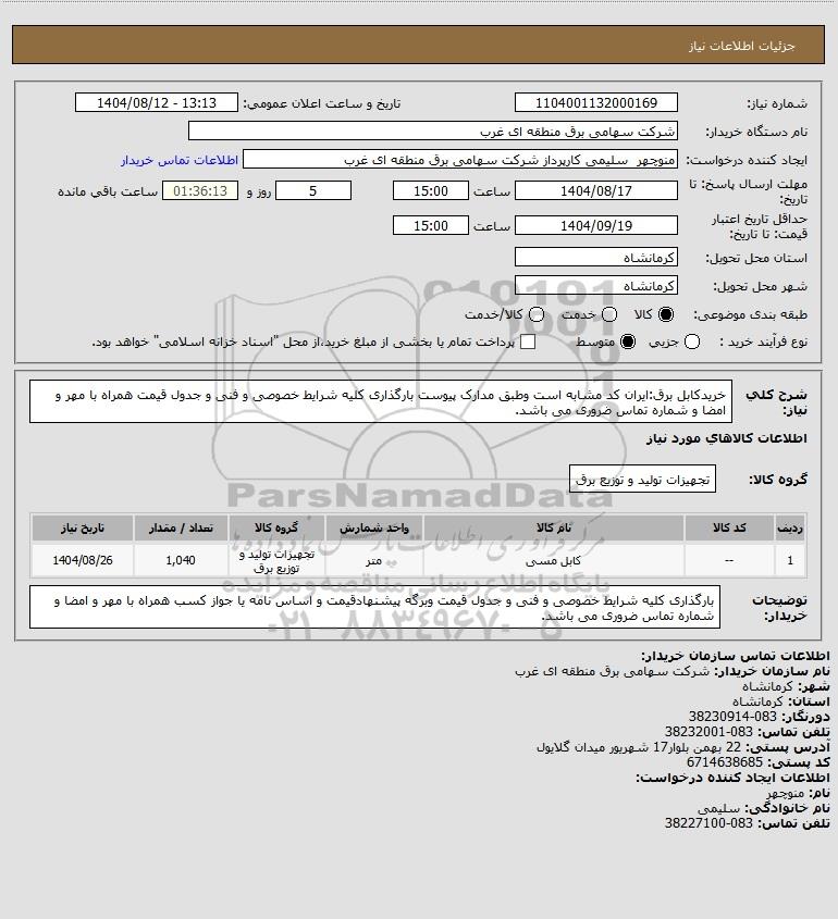 نام دستگاه خریدار:شرکت سهامی برق منطقه ای غرب