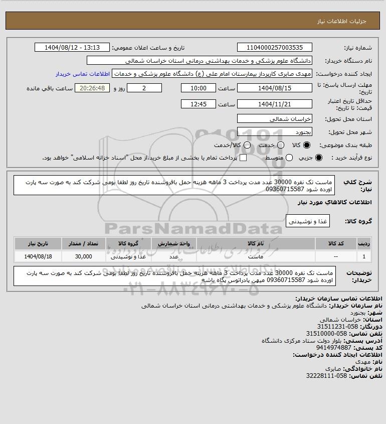 نام دستگاه خریدار:دانشگاه علوم پزشکی و خدمات بهداشتی درمانی استان خراسان شمالی
