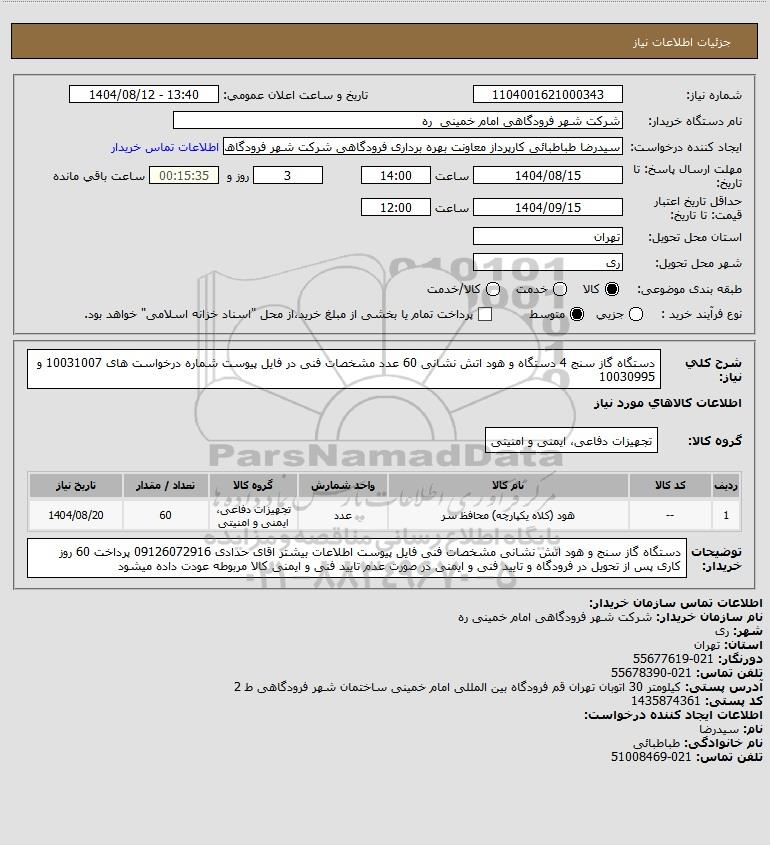 شرح کلی نیاز: دستگاه گاز سنج 4 دستگاه و هود اتش نشانی 60 عدد مشخصات فنی در فایل پیوست