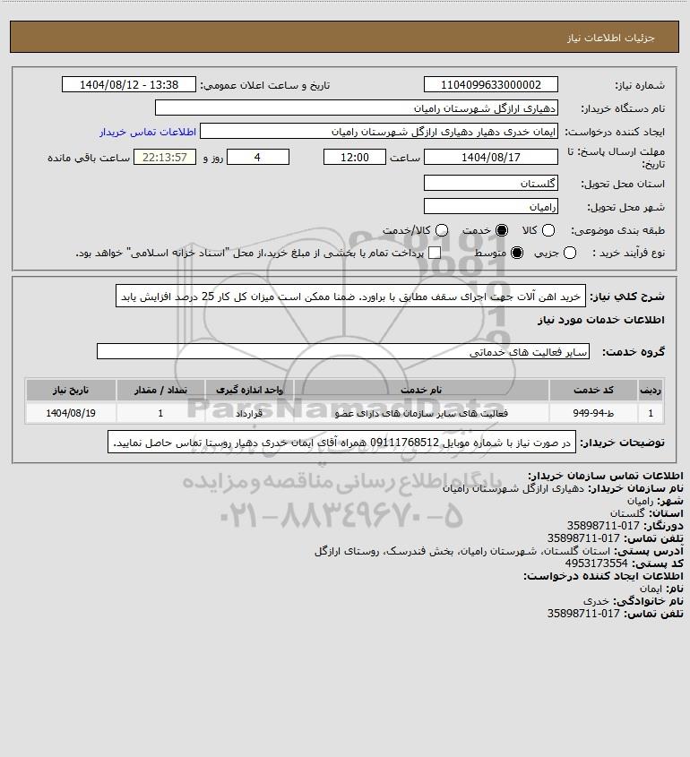 نام دستگاه خریدار:دهیاری ارازگل شهرستان رامیان