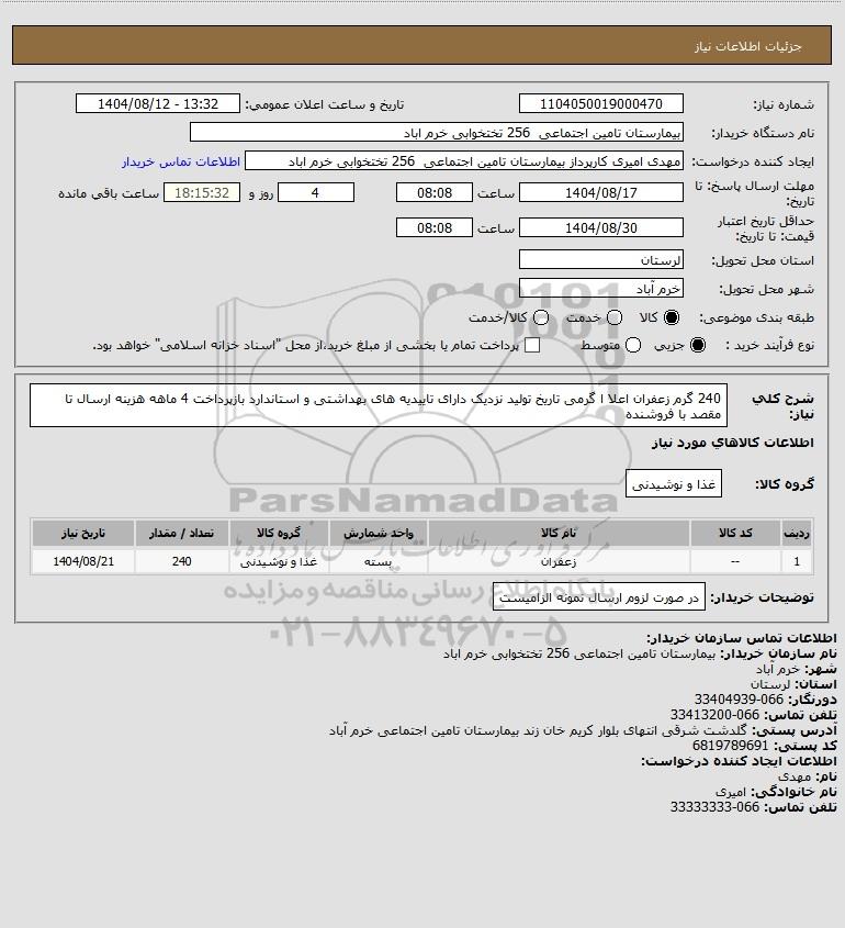 | 1 | -- | زعفران | بسته | غذا و نوشیدنی | 240 | 1404/08/21 |
