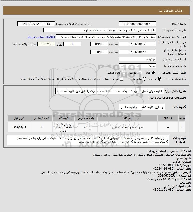 شرح کلی نیاز: 1.نیم موتور کامل ....پرداخت یک ماه ....لطفا قیمت استوک واصلی مورد تایید است ...