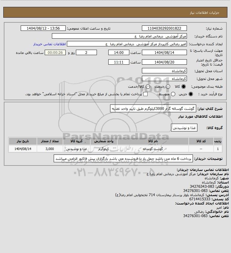 شرح کلی نیاز: گوشت گوساله گرم 3000کیلوگرم