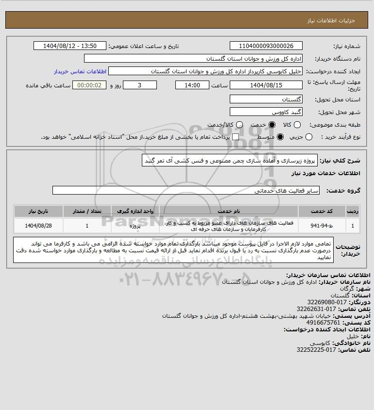 شرح کلی نیاز: پروژه زیرسازی و آماده سازی چمن مصنوعی و فنس کشی آی تمر گنبد