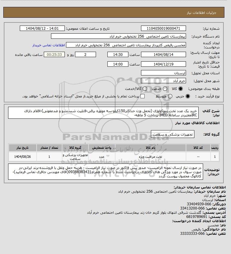 نام سازمان خریدار: بیمارستان تامین اجتماعی 256 تختخوابی خرم اباد