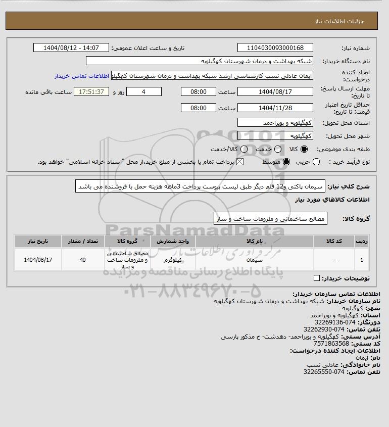 نام دستگاه خریدار:شبکه بهداشت و درمان شهرستان کهگیلویه