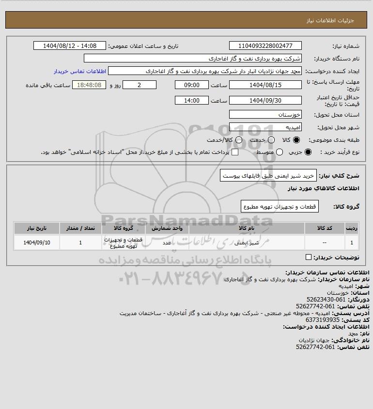 نام دستگاه خریدار:شرکت بهره برداری نفت و گاز اغاجاری