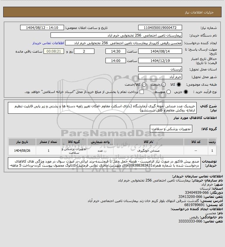 نام دستگاه خریدار:بیمارستان تامین اجتماعی 256 تختخوابی خرم اباد