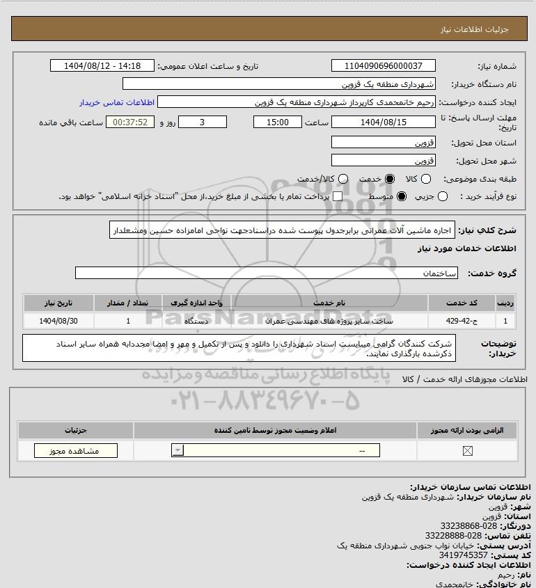 نام دستگاه خریدار:شهرداری منطقه یک قزوین