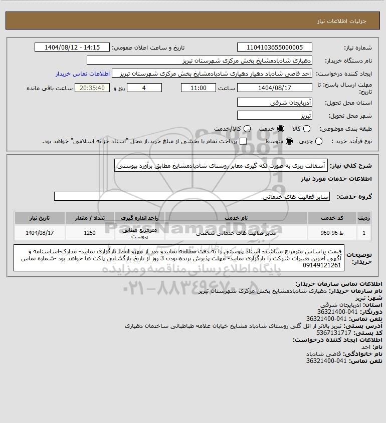 نام دستگاه خریدار:دهیاری شادبادمشایخ بخش مرکزی شهرستان تبریز