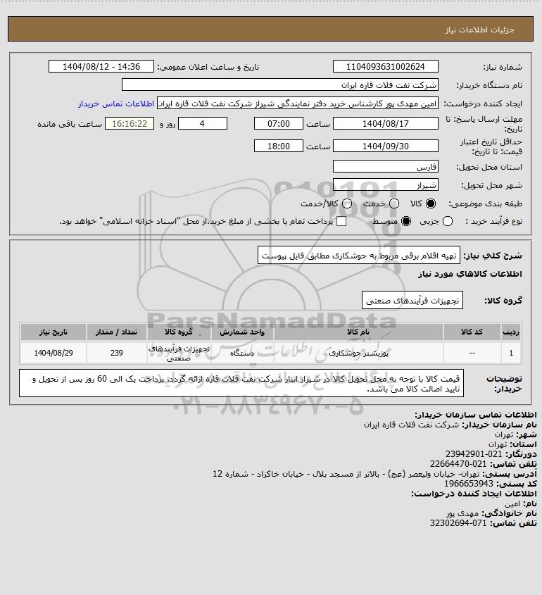 نام دستگاه خریدار:شرکت نفت فلات قاره ایران