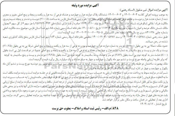 آگهی مزایده اموال غیر منقول (اسناد رهنی)