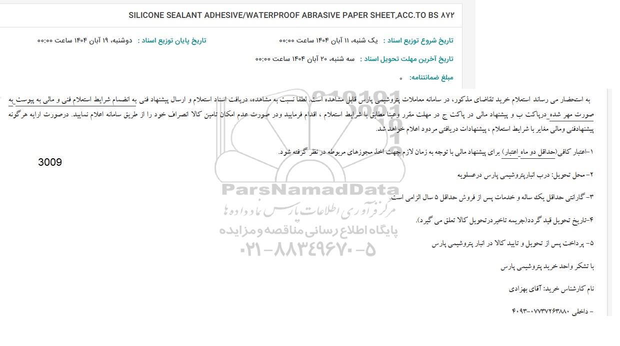 استعلام SILICONE SEALANT ADHESIVE/WATERPROOF ABRASIVE PAPER SHEET, ACC.TO BS 872, استعلام SILICONE SEALANT ADHESIVE/WATERPROOF ABRASIVE PAPER SHEET, ACC.TO BS 872