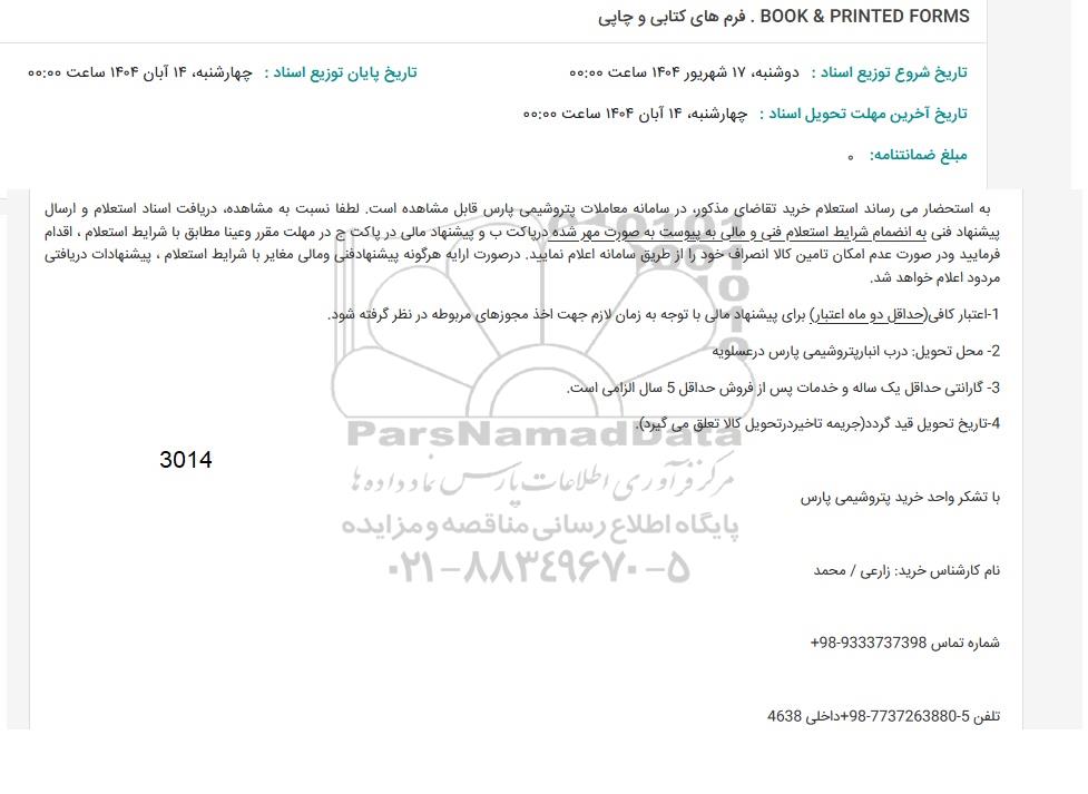 استعلام  BOOK & PRINTED FORMS فرم های کتابی و چاپی, استعلام  BOOK & PRINTED FORMS فرم های کتابی و چاپی
