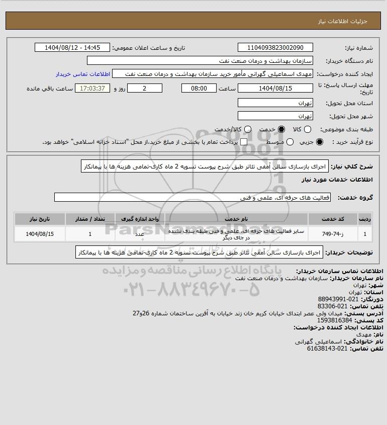 نام دستگاه خریدار:سازمان بهداشت و درمان صنعت نفت