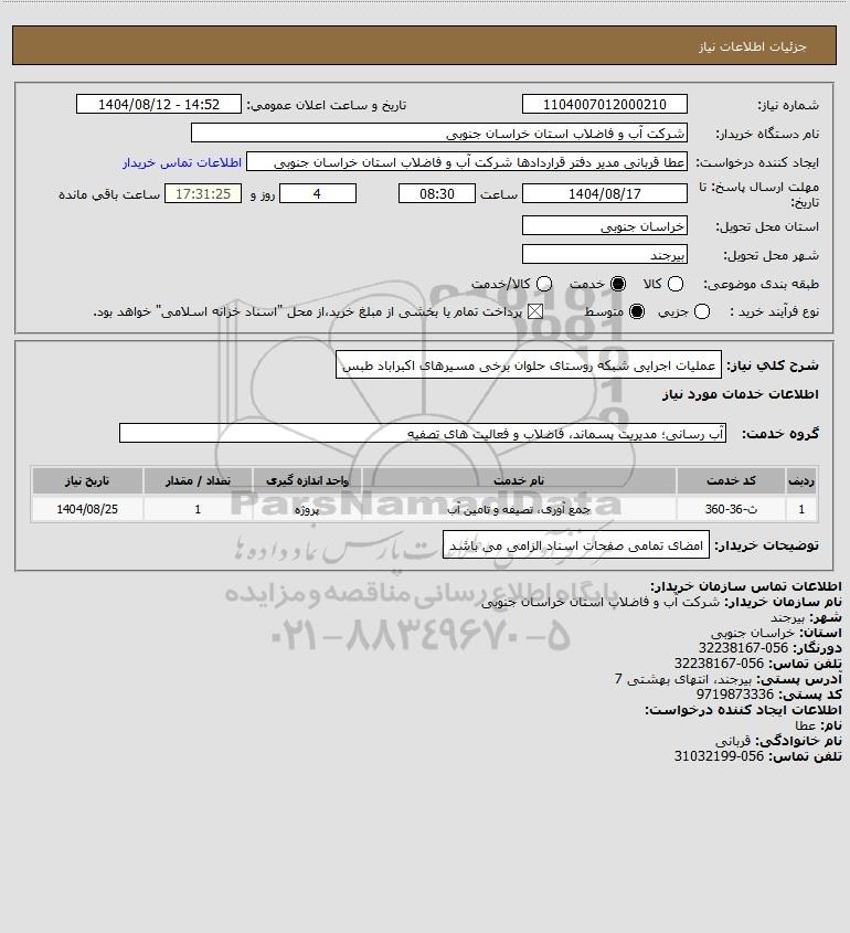 نام دستگاه خریدار:شرکت آب و فاضلاب استان خراسان جنوبی
