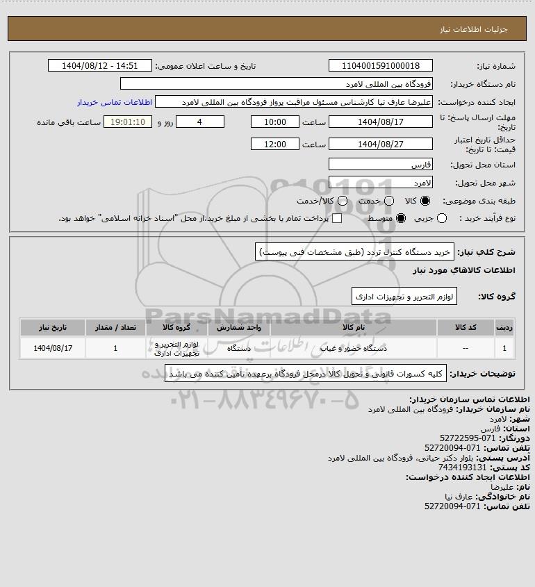 نام دستگاه خریدار:فرودگاه بین المللی لامرد