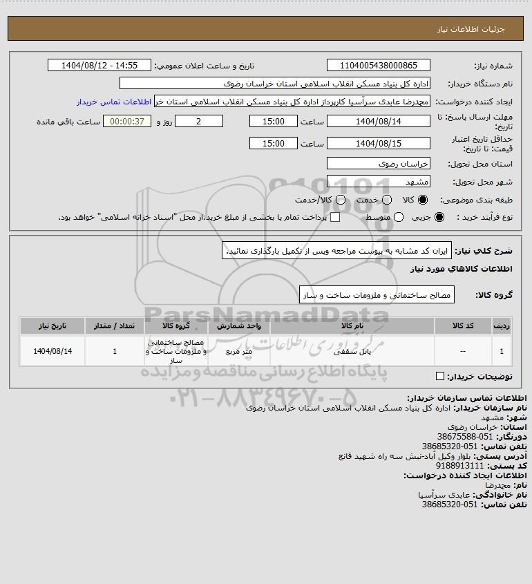 نام دستگاه خریدار:اداره کل بنیاد مسکن انقلاب اسلامی استان خراسان رضوی