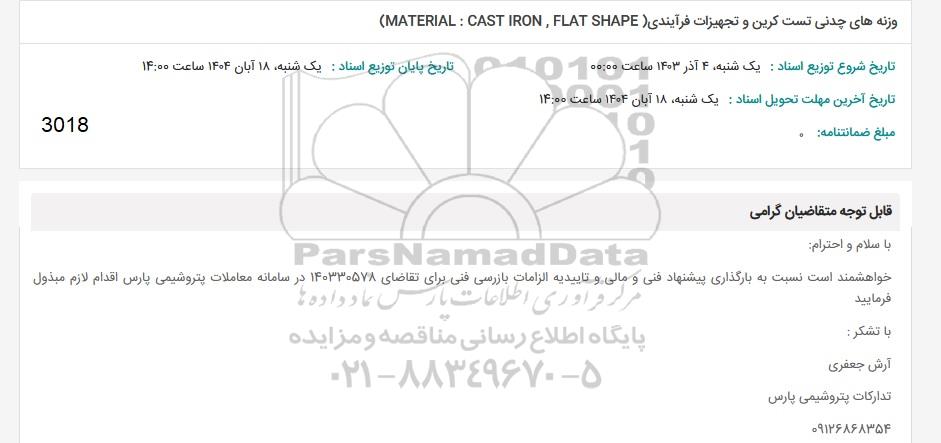 استعلام وزنه های چدنی تست کرین و تجهیزات فرآیندی (MATERIAL: CAST IRON, FLAT SHAPE ), استعلام وزنه های چدنی تست کرین و تجهیزات فرآیندی (MATERIAL: CAST IRON, FLAT SHAPE )
