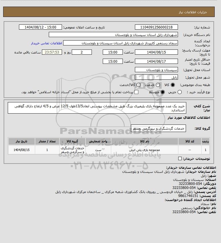 استعلام خرید یک عدد مجموعه بازی پلیمیری بزرگ طبق مشخصات پیوستی ابعاد13/5طول 12/5 عرض و 4/5 ارتفاع دارای گواهی استاندارد, استعلام خرید یک عدد مجموعه بازی پلیمیری بزرگ طبق مشخصات پیوستی ابعاد13/5طول 12/5 عرض و 4/5 ارتفاع دارای گواهی استاندارد