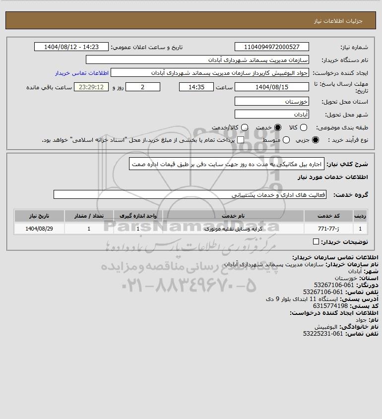 نام دستگاه خریدار:سازمان مدیریت پسماند شهرداری آبادان