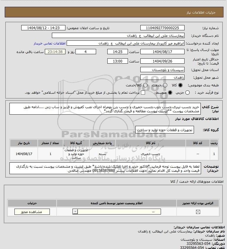 نام دستگاه خریدار:بیمارستان علی ابن ابیطالب ع زاهدان