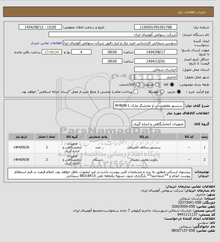 نام سازمان خریدار: شرکت سهامی آلومینای ایران