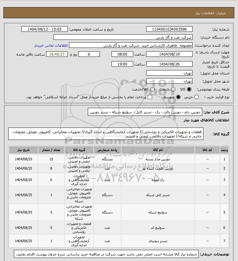 نام دستگاه خریدار:شرکت نفت و گاز پارس