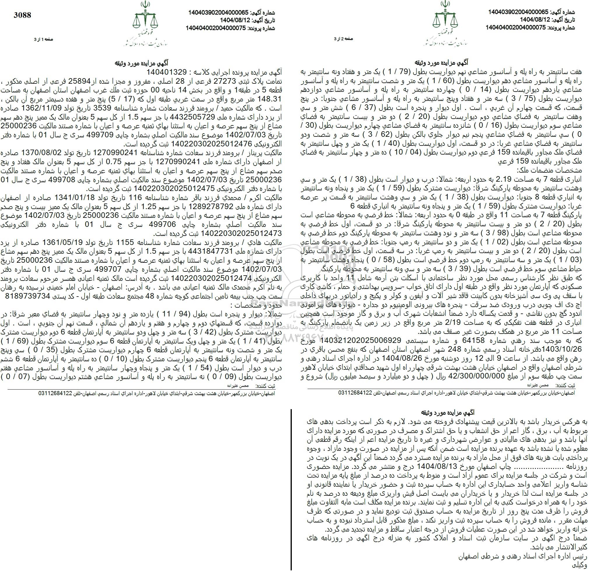 موضوع مزایده : تمامت پلاک ثبتی 27273 فرعی از 28 اصلی، مفروز و مجزی شده از 25894 فرعی از اصلی مذکور، قطعه 5 به مساحت 148.31 مترمربع به ارزش 42.300.000.000 ریال