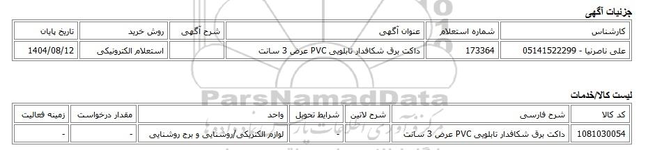 استعلام الکترونیکی داکت برق شکافدار تابلویی PVC عرض 3 سانت, استعلام الکترونیکی، داکت برق شکافدار تابلویی PVC عرض 3 سانت