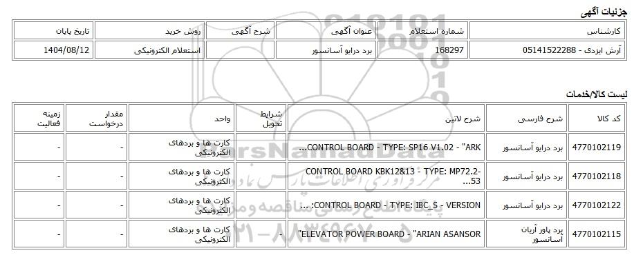 آرش ایزدی - 05141522288168297برد درایو آسانسوراستعلام الکترونیکی1404/08/12