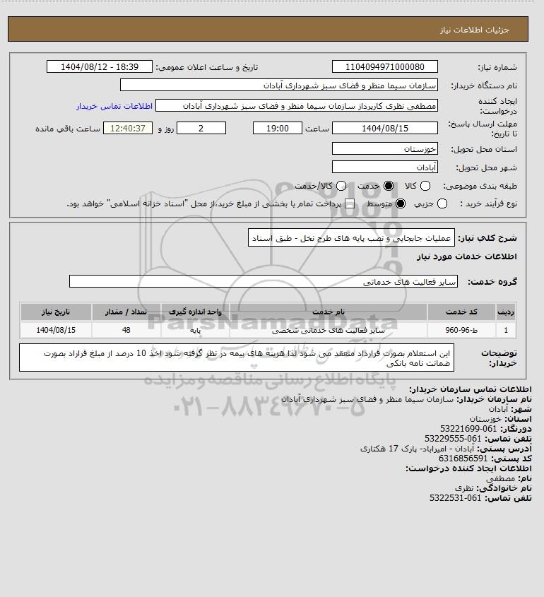 شرح کلی نیاز: عملیات جابجایی و نصب پایه های طرح نخل - طبق اسناد