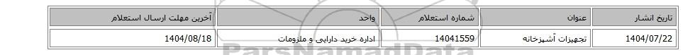 1404/07/22تجهیزات آشپزخانه14041559اداره خرید دارایی و ملزومات1404/08/18