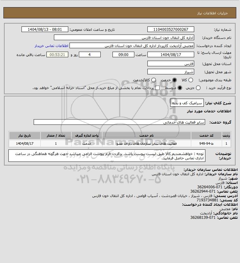 نام دستگاه خریدار:اداره کل انتقال خون استان فارس