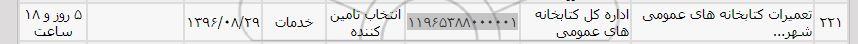 استعلام بها و موضوع استعلام استعلام , استعلام تعمیرات کتابخانه های عمومی به اطلاع کلیه شرکتها و افراد متخصص واجد شرایط میرساند، آگهی گذار در نظر دارد از طریق استعلام بها، نسبت به انتخاب و دریافت پیشنهادات اقدام نماید. این استعلام با کد آگهی ثبت شده در سامانه خبرگزاری پارس نماد : 979840 منتشر شده است. مشخصات استعلام : تاریخ شروع استعلام: 1396/08/29 آخرین مهلت ارسال پیشنهاد قیمت : 1396/09/04 و محل اجرای پروژه : استان سایر میباشد. استعلام قیمت مورد درخواست : استعلام , استعلام تعمیرات کتابخانه های عمومی با دستهبندیهای تخصصی و گروه های مرتبط : ساختمان, استعلام اطلاع رسانی میگردد.