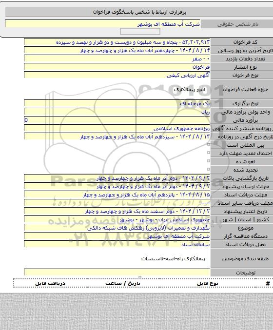 مناقصه نگهداری و تعمیرات (لایروبی) زهکش های شبکه دالکی, مناقصه, نگهداری و تعمیرات (لایروبی) زهکش های شبکه دالکی