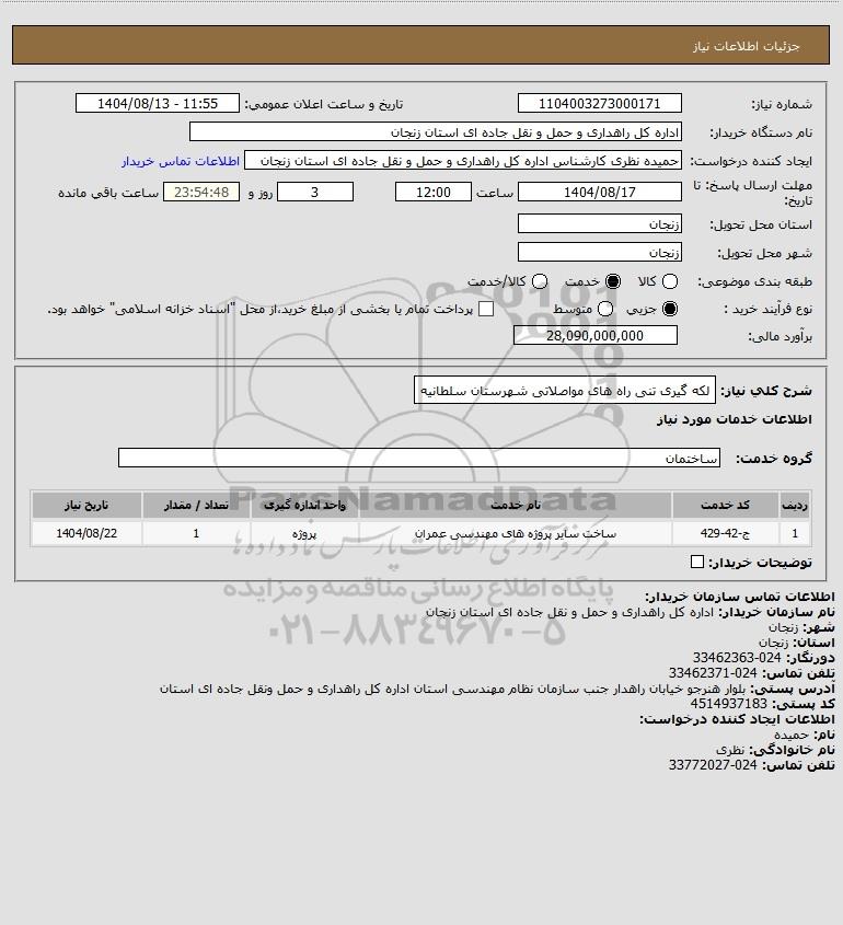 شرح کلی نیاز: لکه گیری تنی راه های مواصلاتی شهرستان سلطانیه