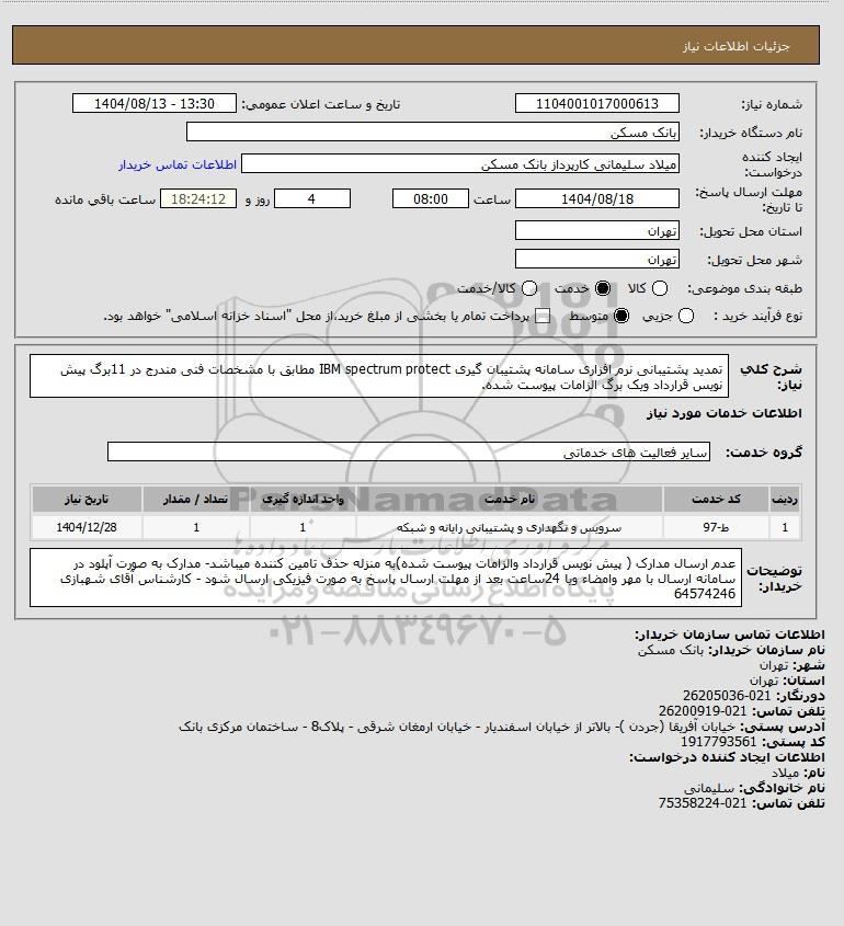 شرح کلی نیاز: تمدید پشتیبانی نرم افزاری سامانه پشتیبان گیری IBM spectrum protect مطابق با مشخصات فنی مندرج در 11برگ پیش نویس قرارداد ویک برگ الزامات پیوست شده.