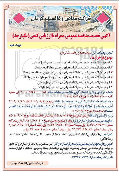 مناقصه انجام عملیات معدنی تجدید نوبت دوم از کلیه افراد متخصص و شرکتها واجد شرایط دعوت به عمل میآید در مناقصه با کد خبرگزاری پارس نماد: 9800678 شرکت نمایند.