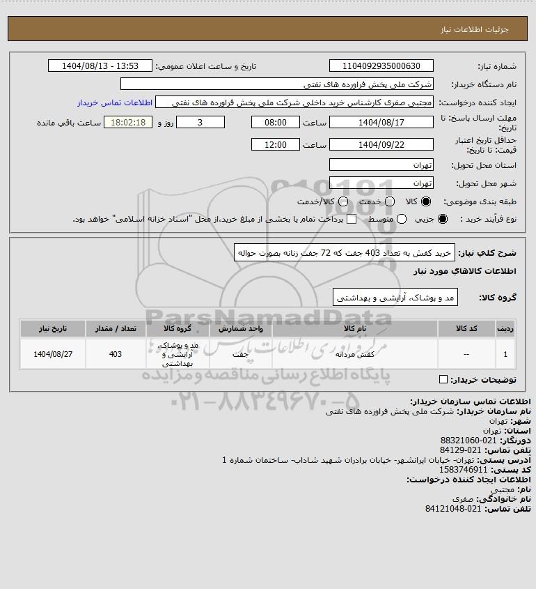 شرح کلی نیاز: خرید کفش به تعداد 403 جفت که 72 جفت زنانه بصورت حواله