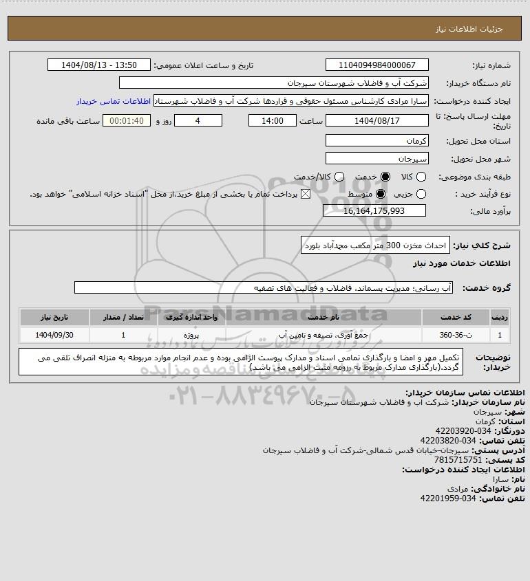 نام دستگاه خریدار:شرکت آب و فاضلاب شهرستان سیرجان