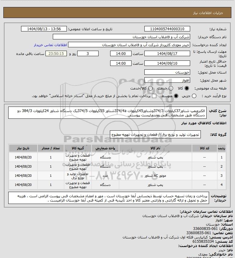 نام دستگاه خریدار:شرکت آب و فاضلاب استان خوزستان