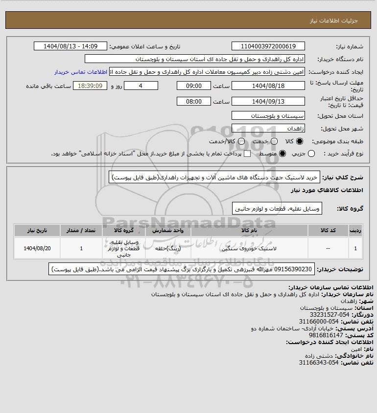 نام دستگاه خریدار:اداره کل راهداری و حمل و نقل جاده ای استان سیستان و بلوچستان