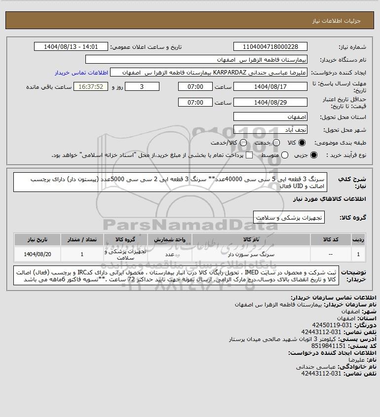 نام دستگاه خریدار:بیمارستان فاطمه الزهرا س اصفهان