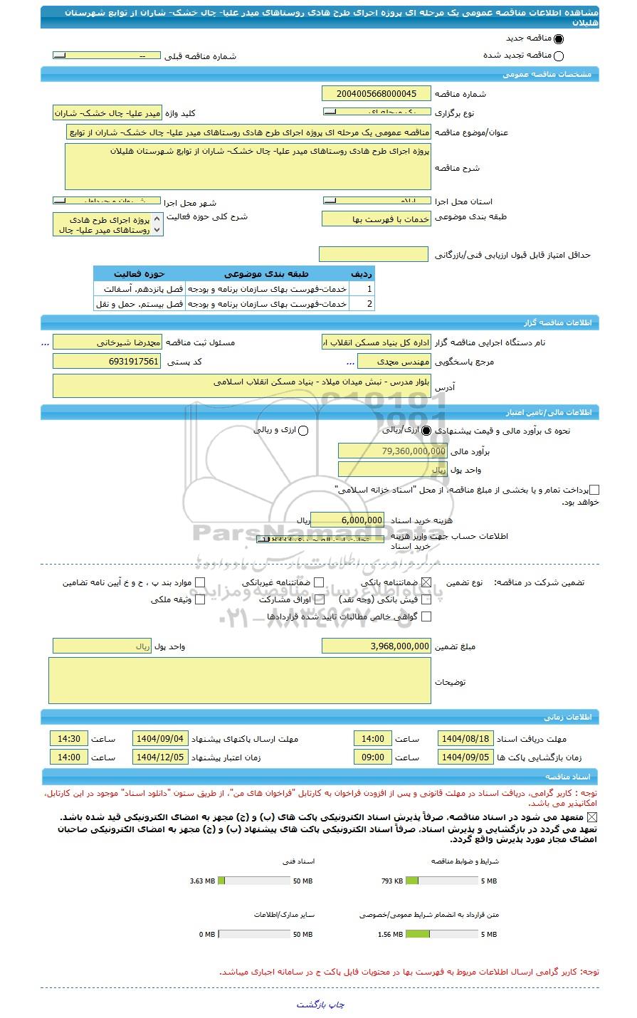 | نام دستگاه اجرایی مناقصه گزار | اداره کل بنیاد مسکن انقلاب اسلامی استان ایلام | مسئول ثبت مناقصه | محمدرضا شیرخانی |