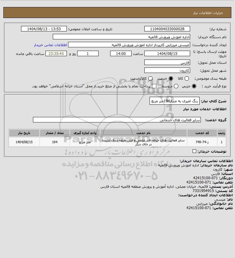 شرح کلی نیاز: رنگ امیزی به متراژ194متر مربع