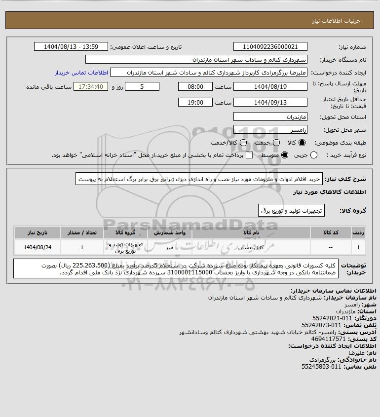 | 1 | -- | کابل مسی | متر | تجهیزات تولید و توزیع برق | 1 | 1404/08/24 |