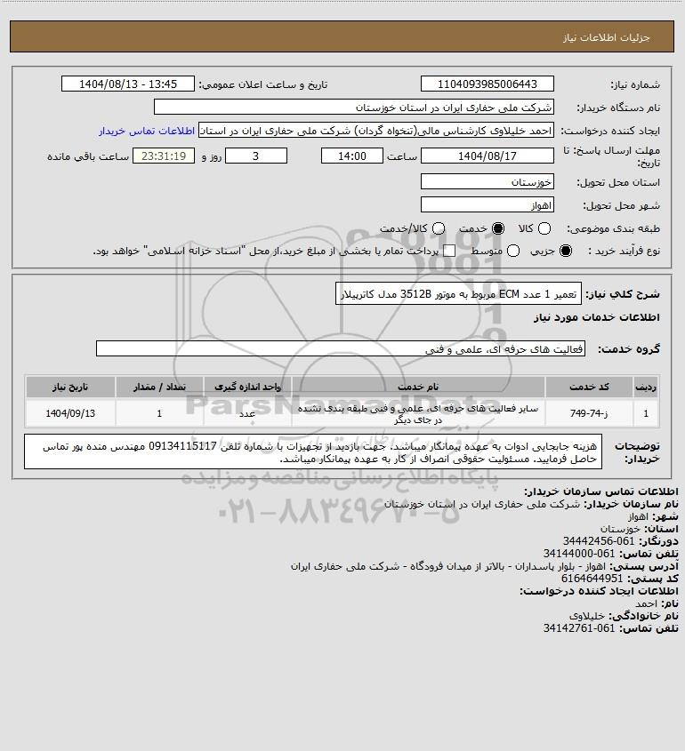 استعلام تعمیر 1 عدد ECM مربوط به موتور 3512B مدل کاترپیلار, استعلام تعمیر 1 عدد ECM مربوط به موتور 3512B مدل کاترپیلار
