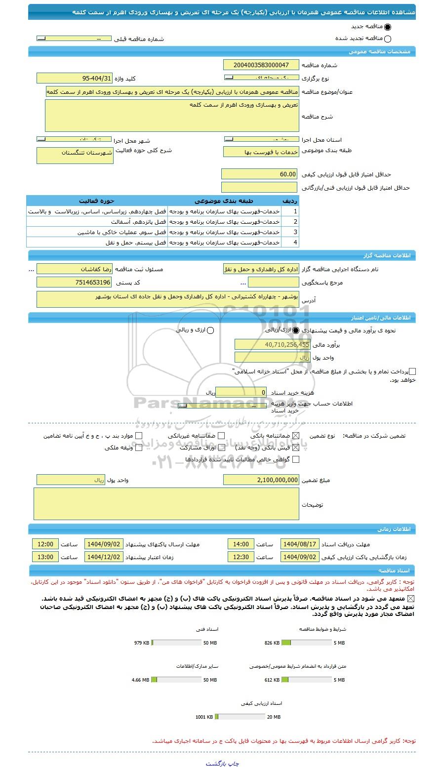 حداقل امتیاز قابل قبول ارزیابی کیفی60.00حداقل امتیاز قابل قبول ارزیابی فنی/بازرگانی